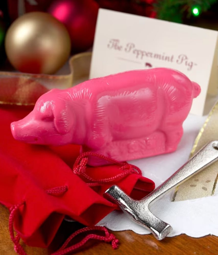 For the month of December, make your pig roast a Peppermint Pig Roast and we’ll include a peppermint candy pig, velvet bag & hammer for your party to take part in the tradition.